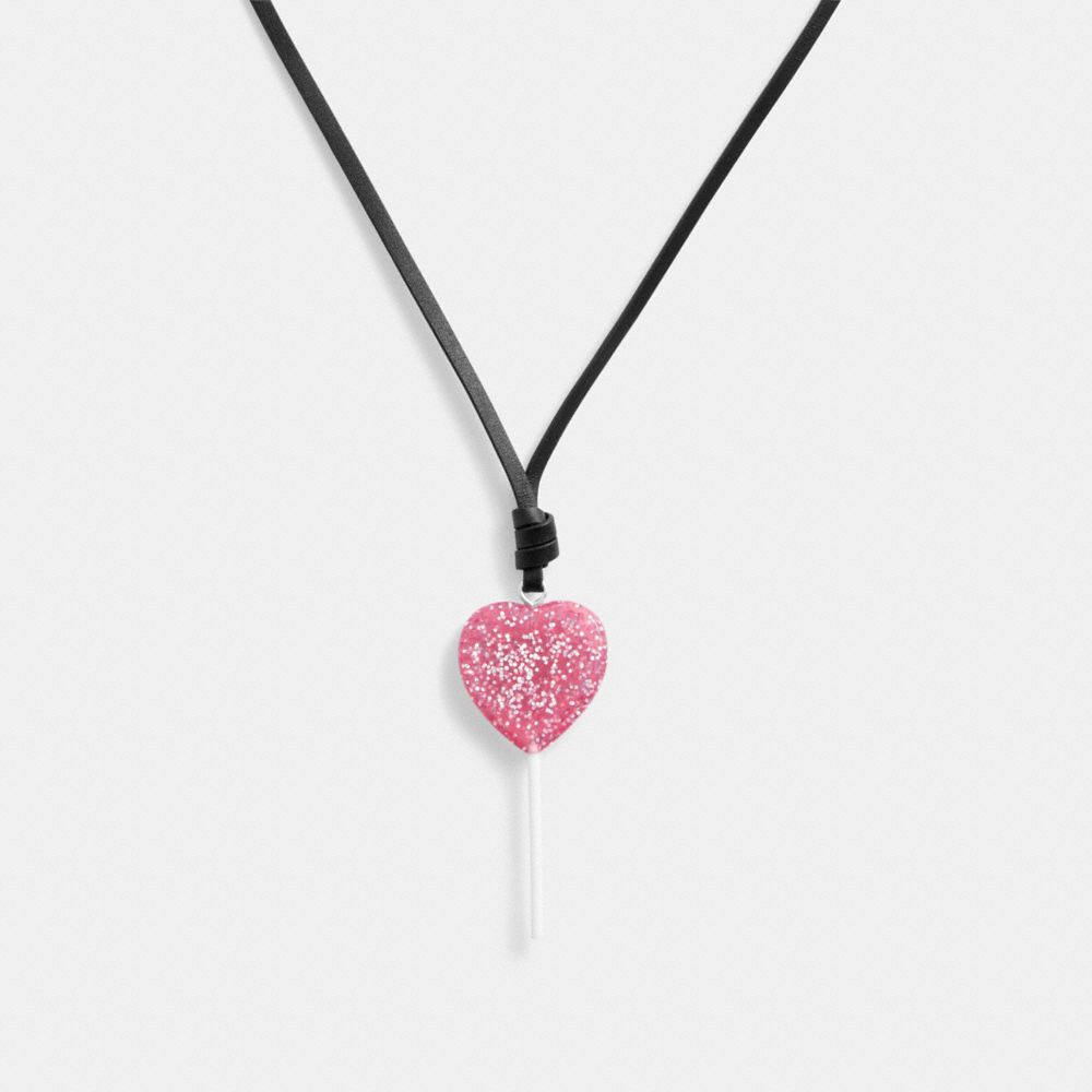 :: Coach The Lil Nas X Drop Heart Lollipop Necklace Zilver Roze | COH866115