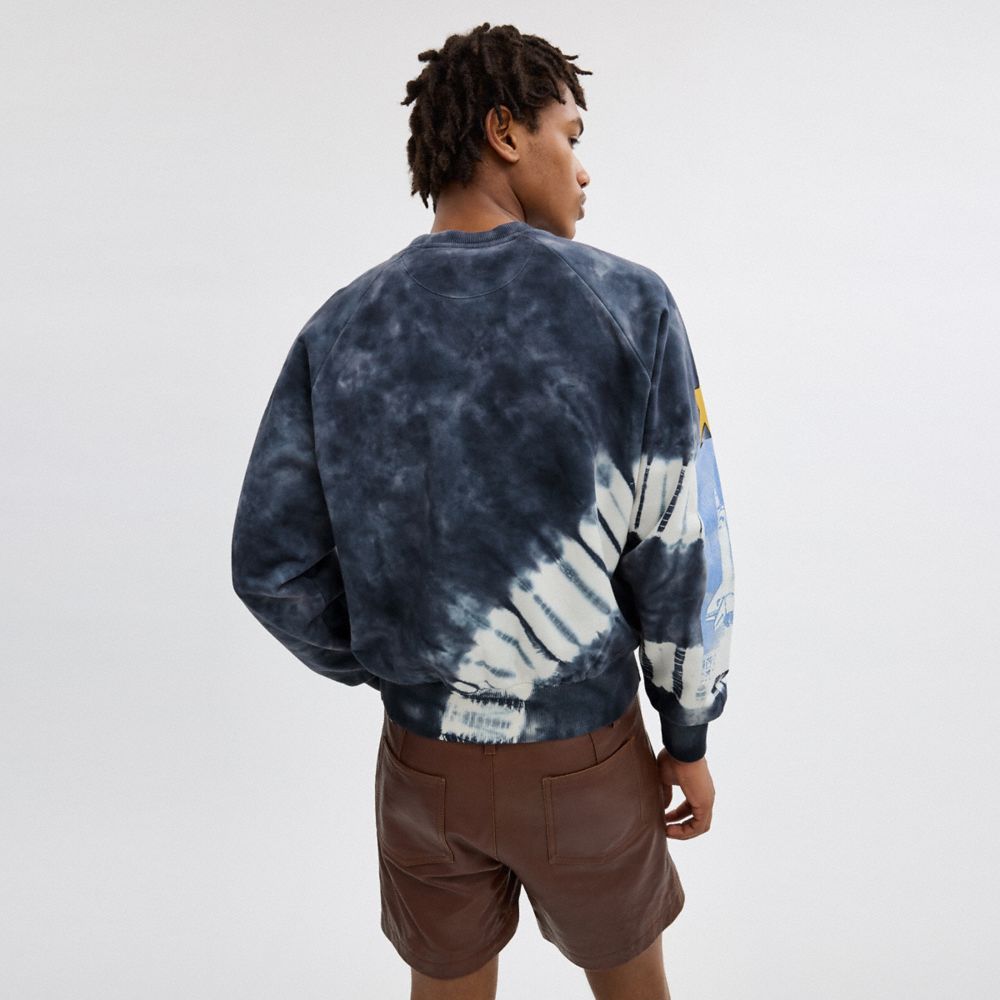 Coach Tie Dye Graphic Crewneck Sweatshirt In Organic Cotton Zwart Wit Gekleurd | COH866003