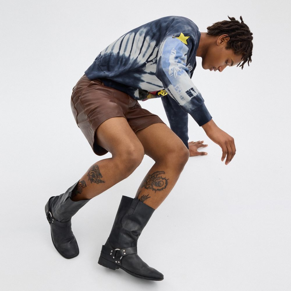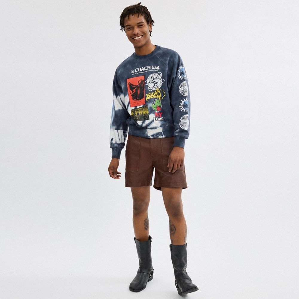 :: Coach Tie Dye Graphic Crewneck Sweatshirt In Organic Cotton Zwart Wit Gekleurd | COH866929