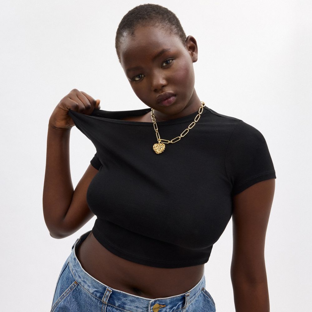 Coach Vintage Heart Pendant Chain Link Necklace Goud | COH866168