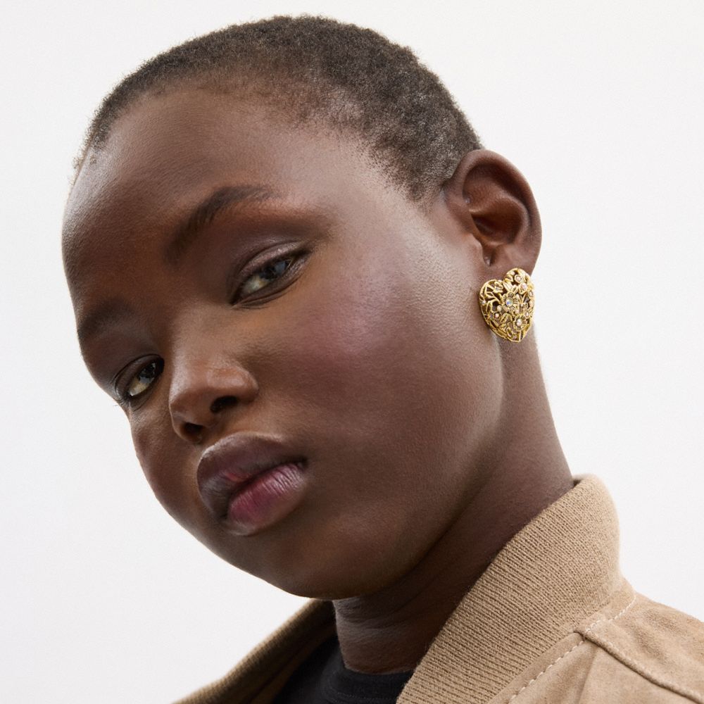 :: Coach Vintage Heart Statement Stud Earrings Goud | COH866144