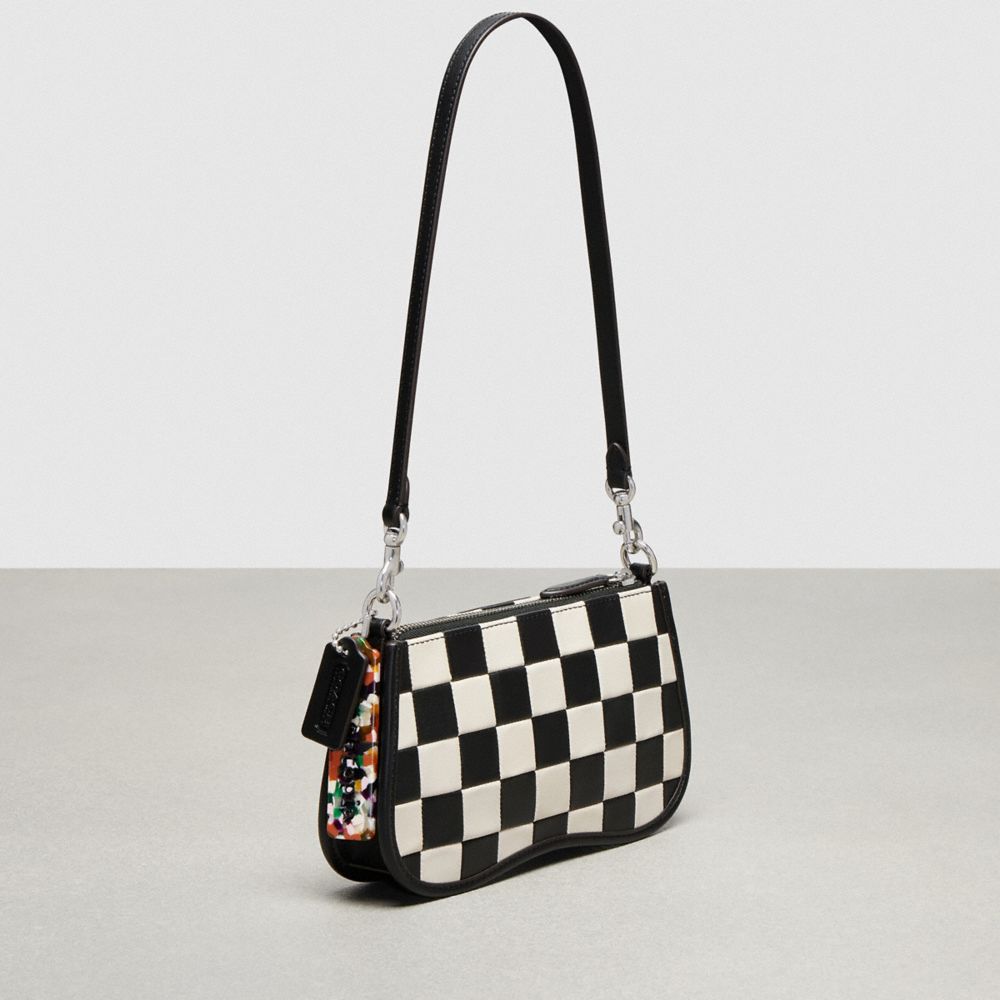 :: Coach Wavy Baguette Bag In Checkerboard Upcrafted Leather Zwart | COH864884