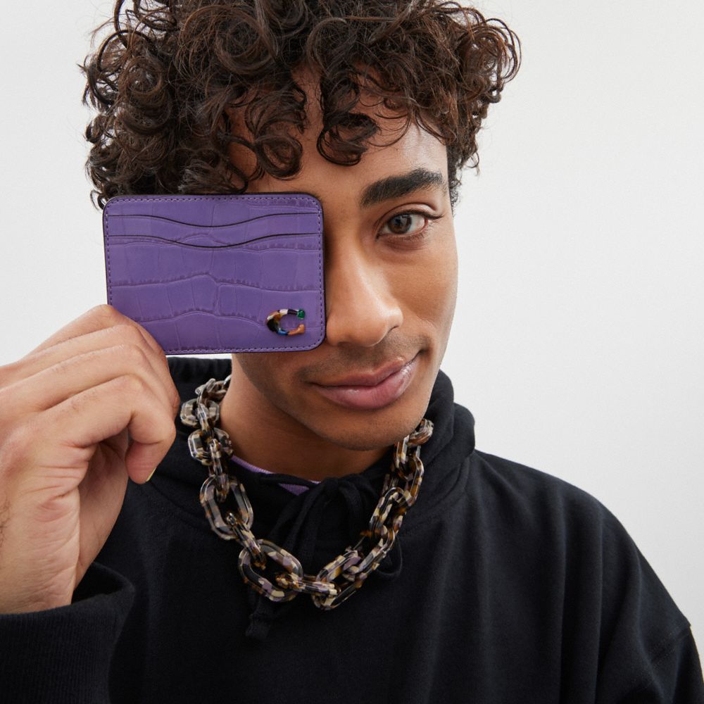 Coach Wavy Card Case In Croc Embossed Coachtopia Leather Paars | COH865598