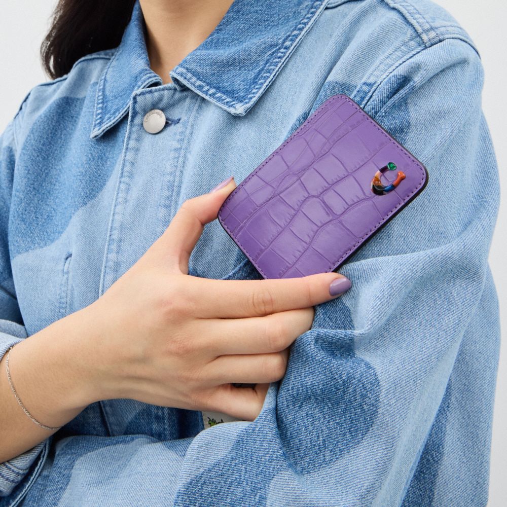 Coach Wavy Card Case In Croc Embossed Coachtopia Leather Paars | COH865710