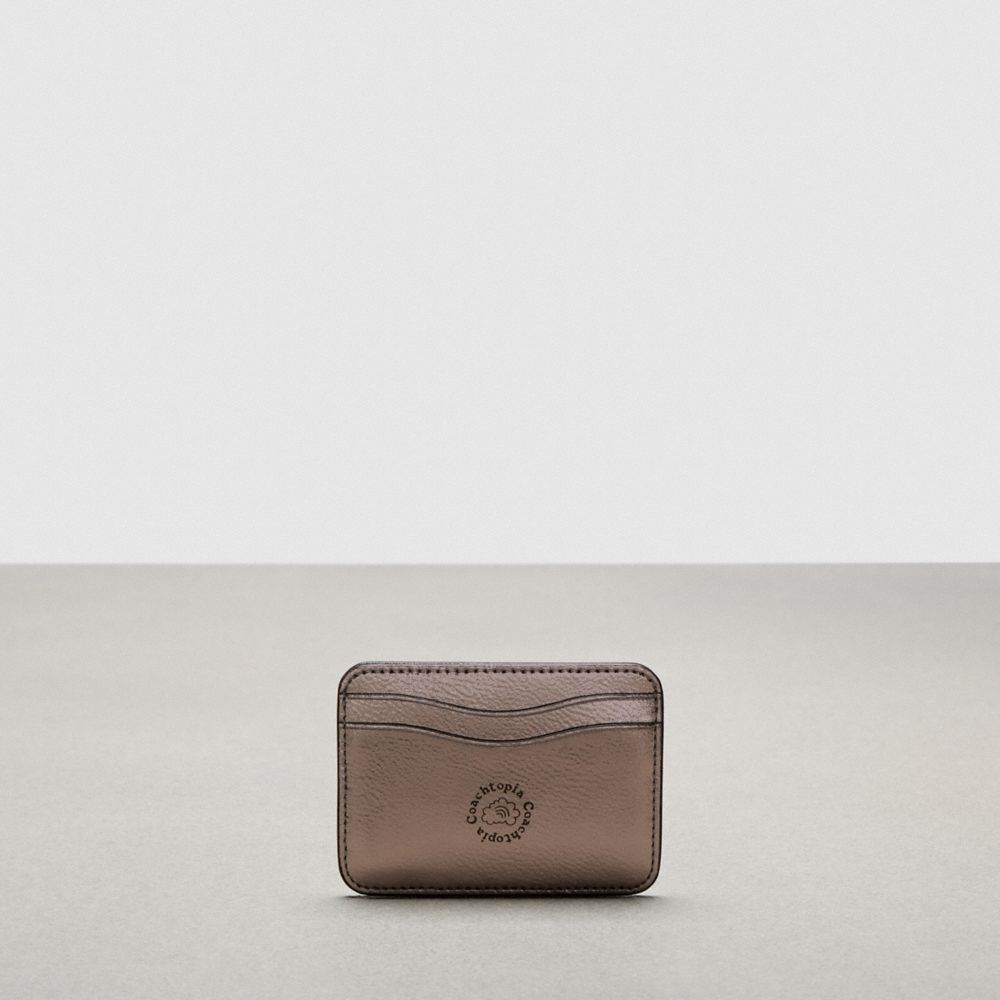 Coach Wavy Card Case In Metallic Coachtopia Leather Grijs Metal | COH865564