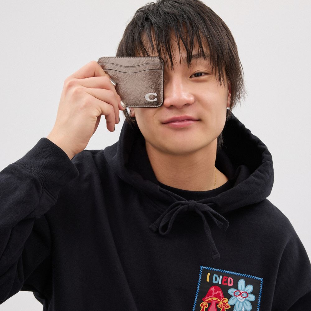 :: Coach Wavy Card Case In Metallic Coachtopia Leather Grijs Metal | COH865564
