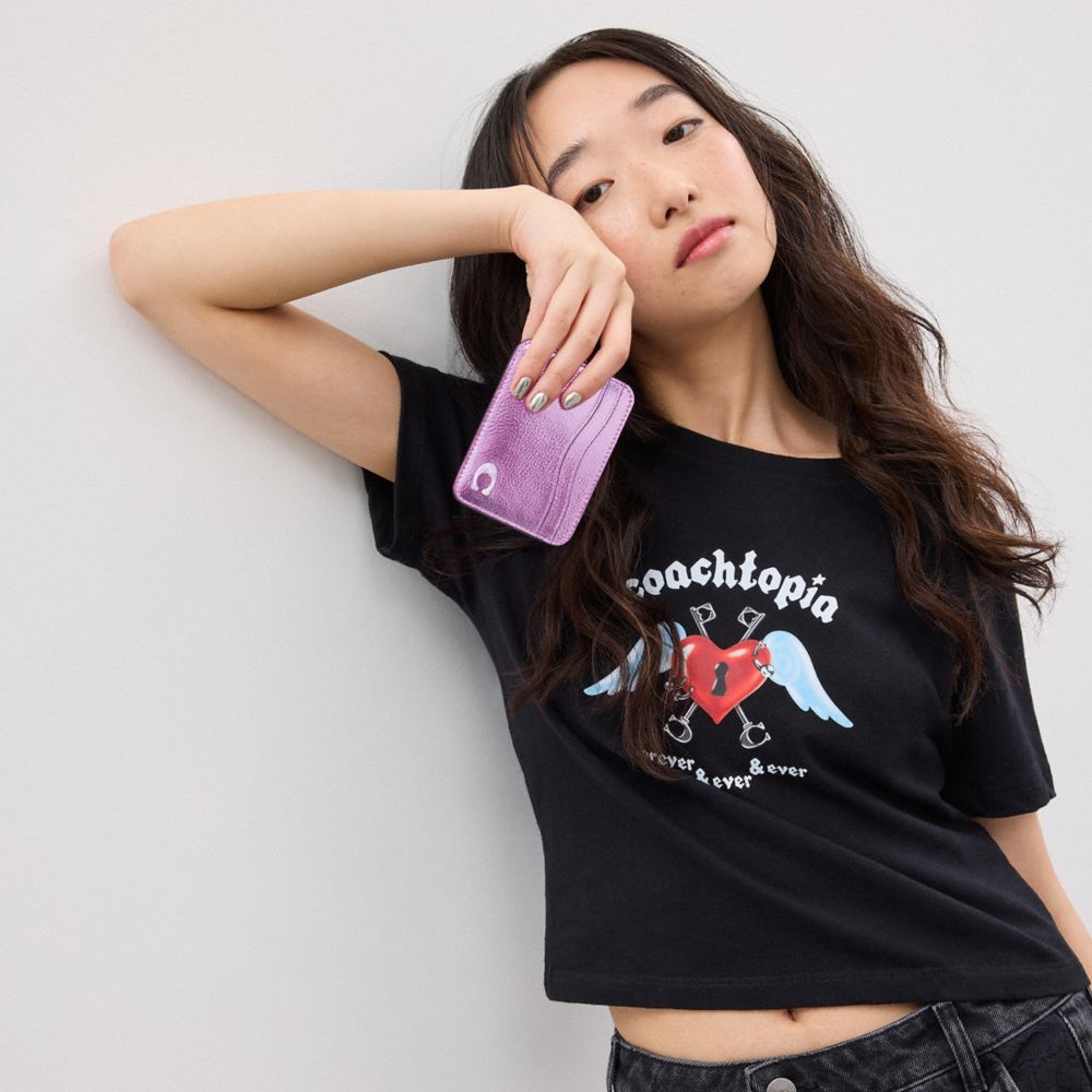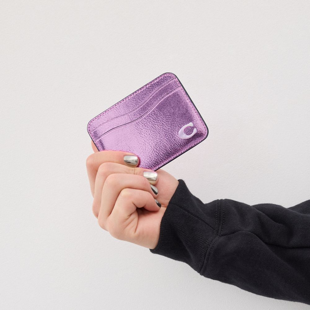 Coach Wavy Card Case In Metallic Coachtopia Leather Roze Metal | COH865709