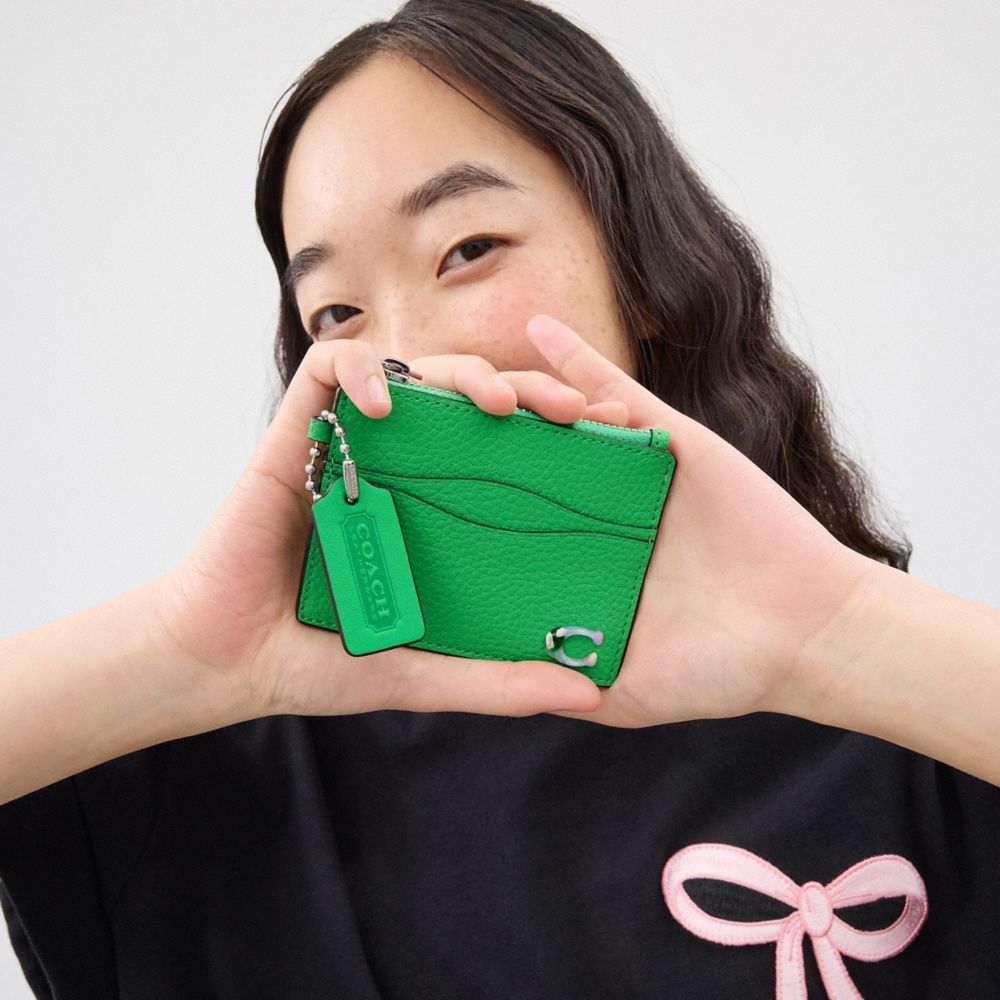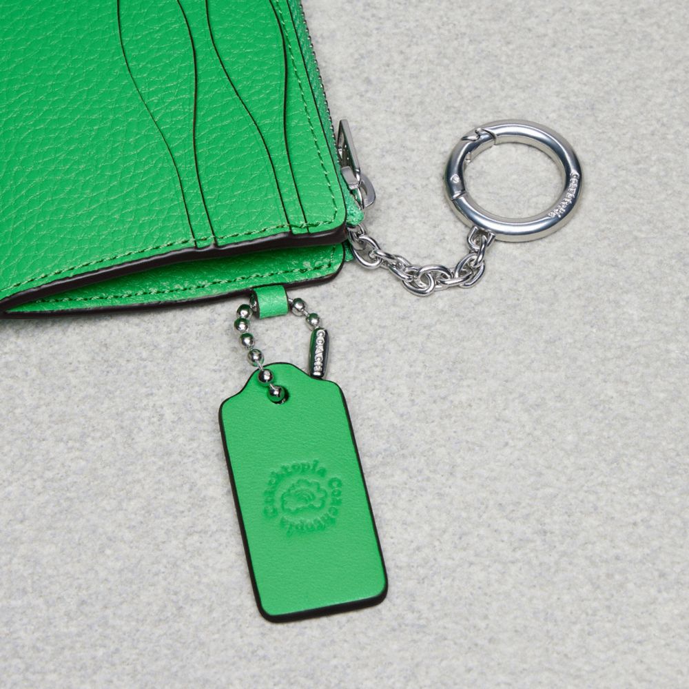 :: Coach Wavy Zip Card Case In Pebbled Coachtopia Leather With Key Ring Groen | COH865673