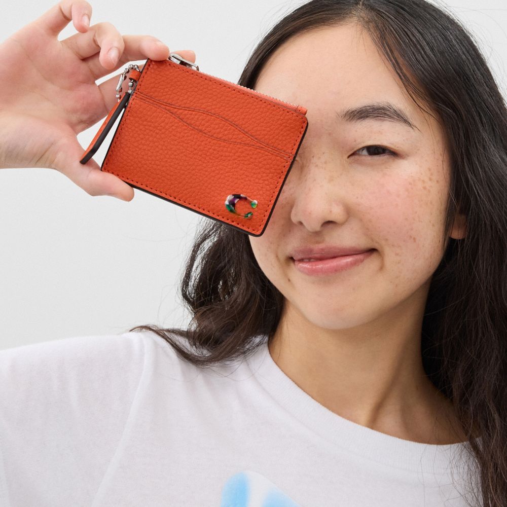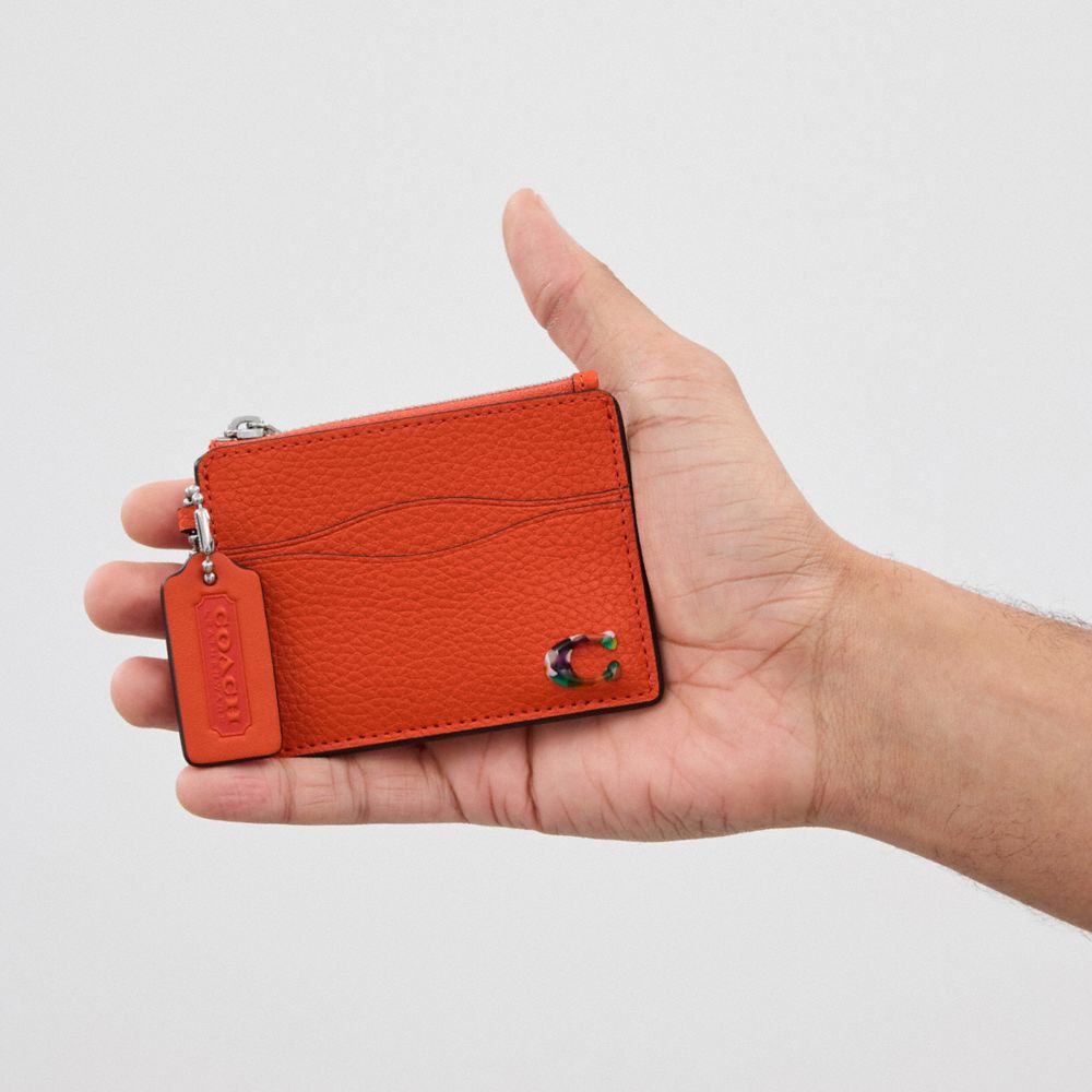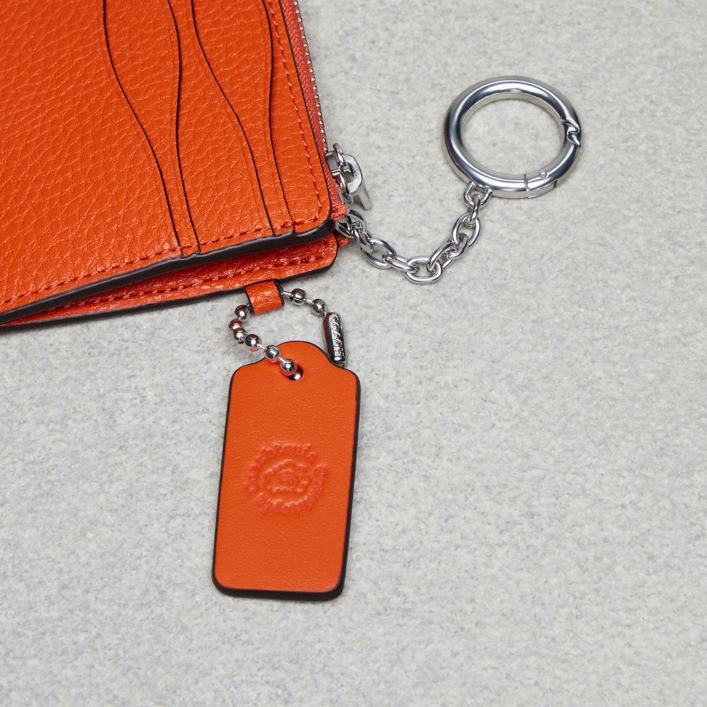 :: Coach Wavy Zip Card Case In Pebbled Coachtopia Leather With Key Ring Oranje | COH865705