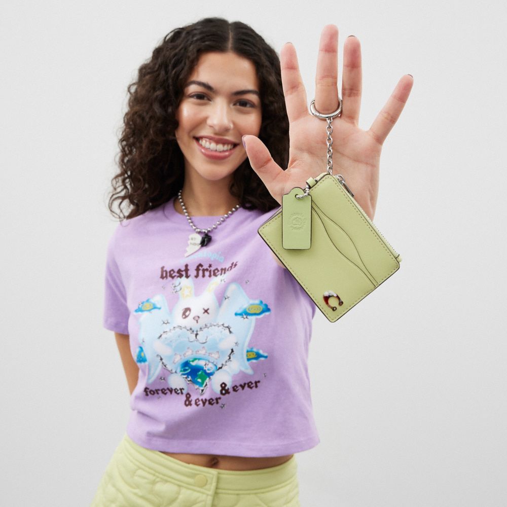 :: Coach Wavy Zip Card Case With Key Ring In Smooth Coachtopia Leather Lichtgroen | COH865562