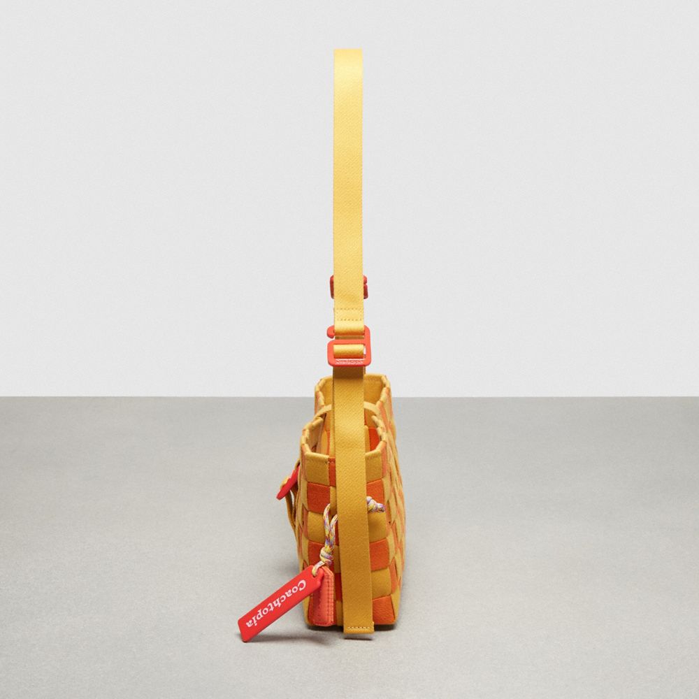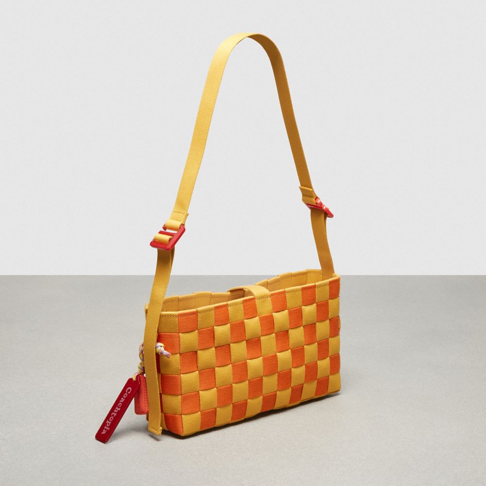 Coach Woven Checkerboard Shoulder Bag With Webbing Geel Oranje | COH864870