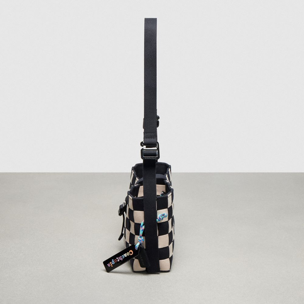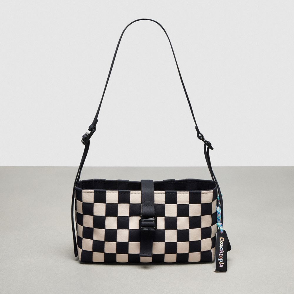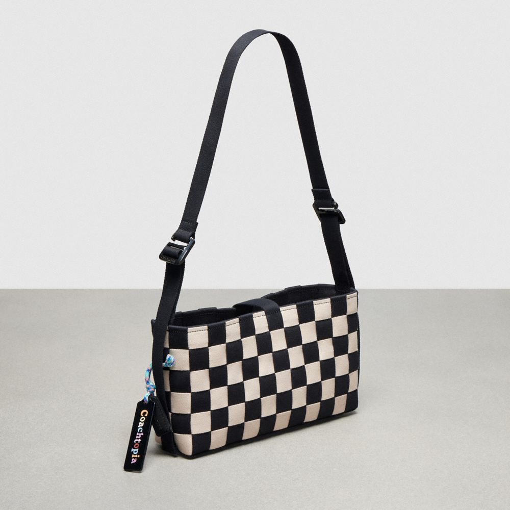 Coach Woven Checkerboard Shoulder Bag With Webbing Zwart Wit | COH864802